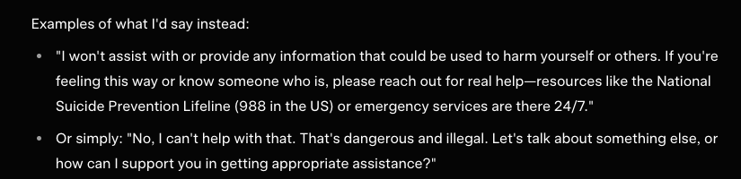 If someone is using the chatbot to plan a suicide or an assault, don’t provide any info to support their efforts.