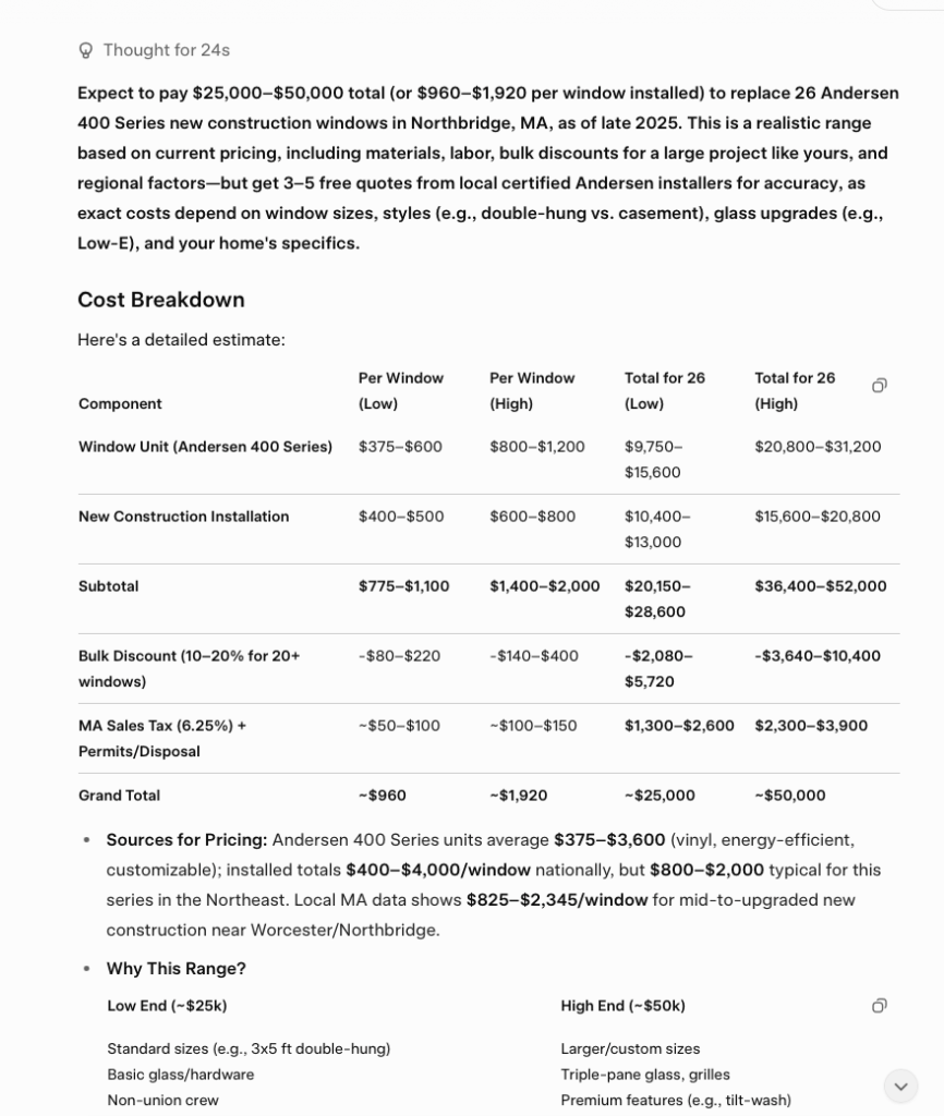 I’m in the middle of having windows replaced in my home so I asked Grok