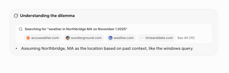 It thought for 1m 47s (OK, it wasn’t 2 minutes) and did a deeper web search to find more related info.