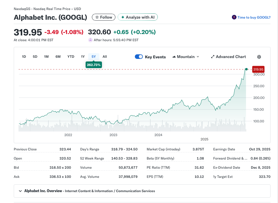 Google parent Alphabet is a mega cap stock. It’s huge. But it seems to have done pretty well over the past 5 years.