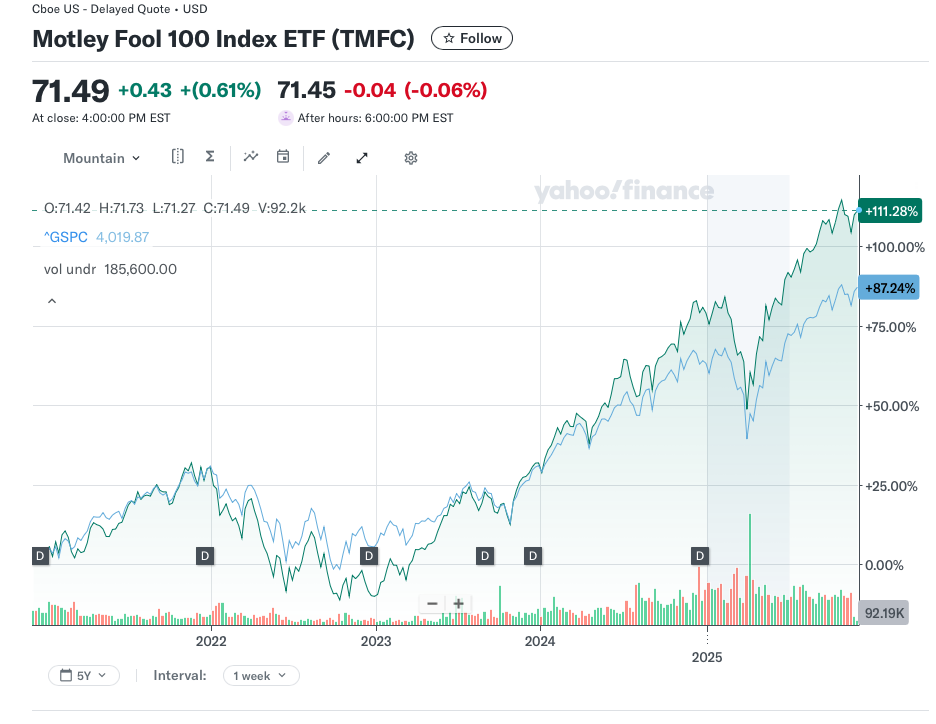 My other favorite is Motley Fool 100 Index ETF (TMFC)