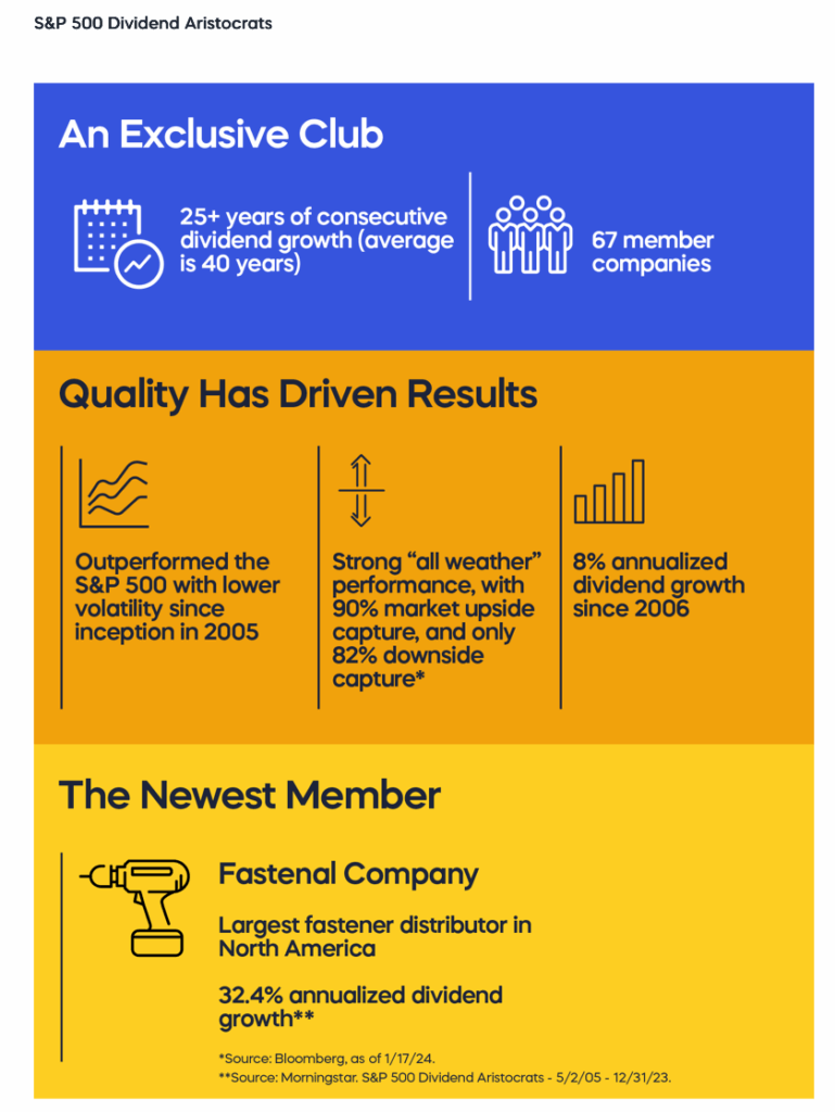 Fastenal is a dividend aristocrat. Read here from proshares.