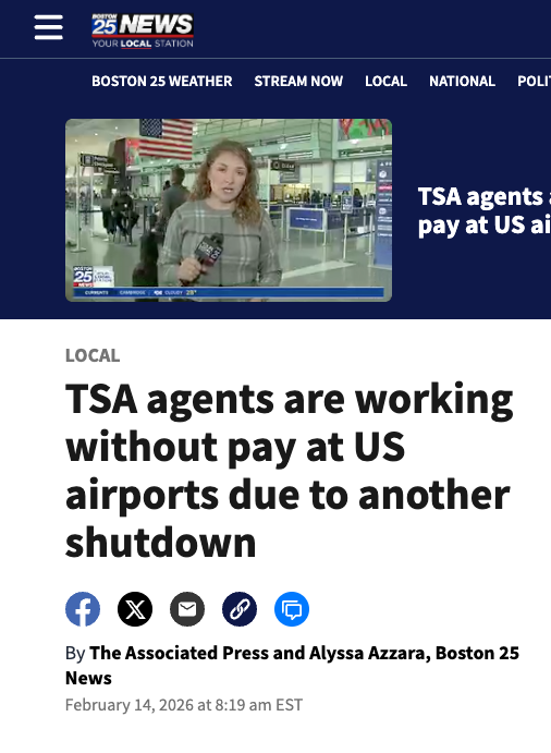 This could be a big deal. 2 weeks ago, my wife and I went on a winter vacation. Remember back to January 31. Funding had lapsed as congress was on break. We left extra early and got through TSA, but I was in a bit of a panic. We had 5 days planned. I had an expensive hotel waiting as well as a rental car. I can’t imagine the nice folks in the Caymans giving me my money back because the US government couldn’t get its act together.