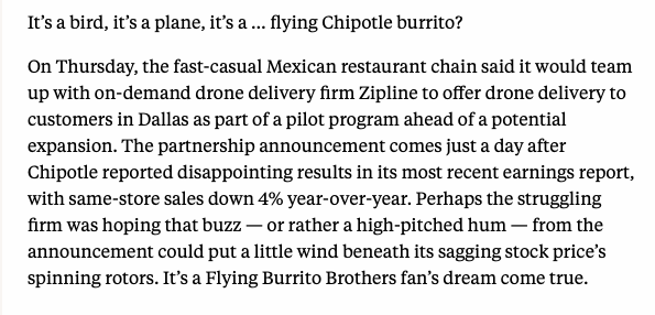 As soon as I started reading, I was thinking of a Flying Burrito Brothers joke. The author beat me to it. Damn.