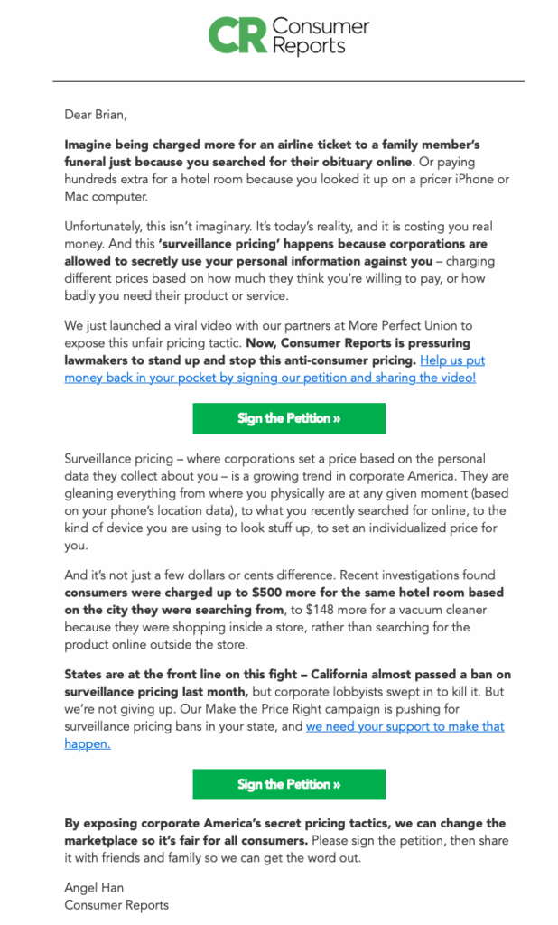 And if you really want to put an end to this. Consumer Reports is starting a petition.
