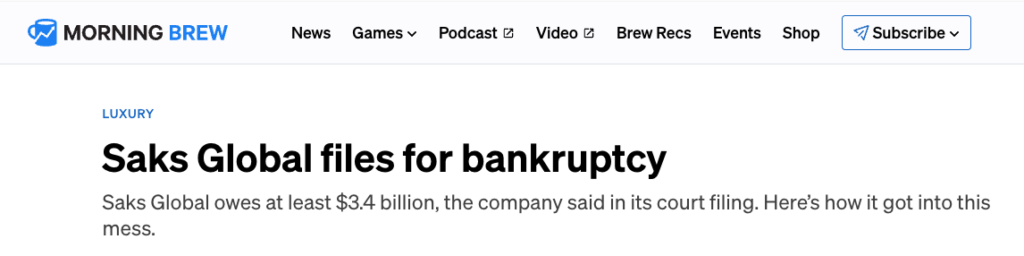 Saks is re-organizing, not liquidating so this isn’t the end, but we still lost money in December. Maybe we’ll get some of our expected June interest? More to come.