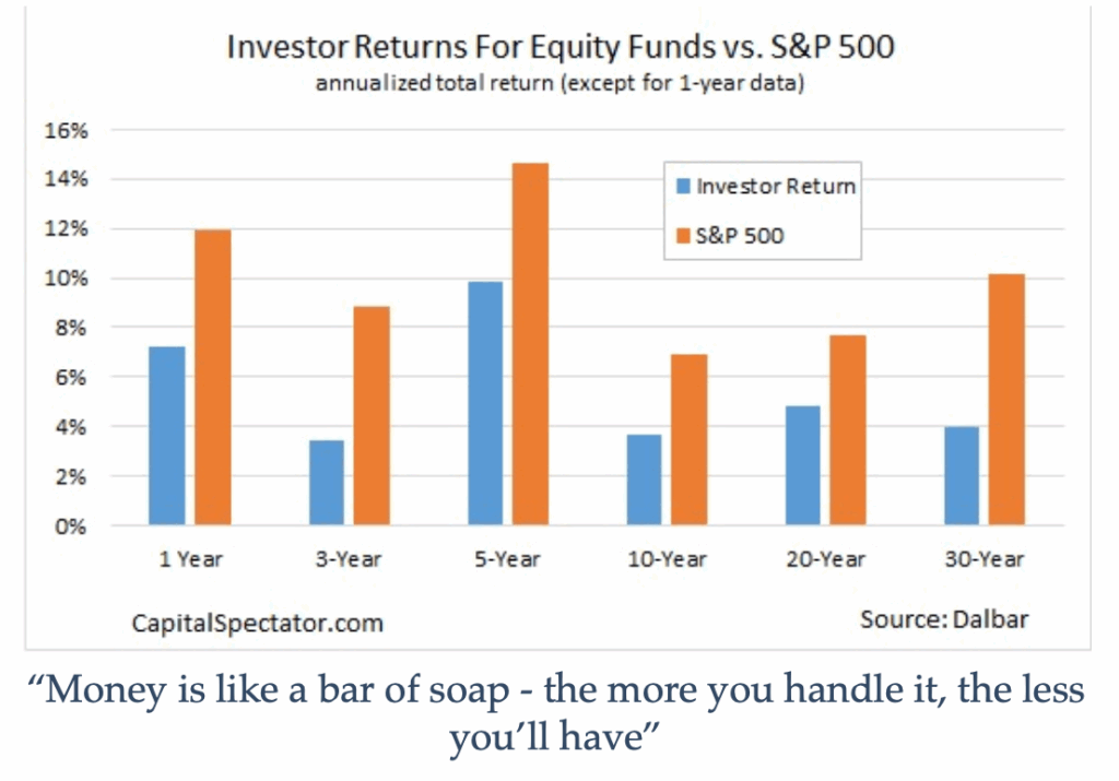 This shows us that everyday investors are lagging the performance of the S&P 500 in all time periods. That means we’re losing out.