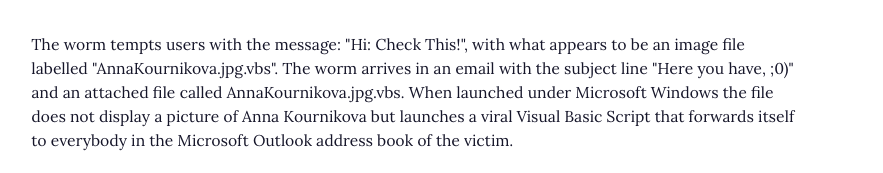 What makes phishing so effective is the volume of emails sent. We get the Anna K email and we think “Hey, what Jackass sent me this?” and we delete it. At least that’s what we tell people. In reality, millions clicked on the image.