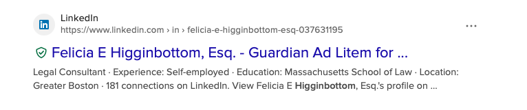 The only Frank Higginbottom that showed up in my Google search was a dentist. If I add “attorney” to my search criteria, I find his sister Felicia.