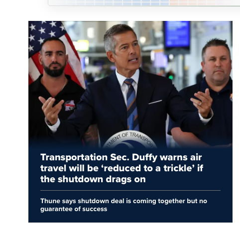 I think the air travel issue will be the one that breaks the log jam. All those folks that paid for the inauguration and for the ballroom will have something to say. And thanks to their donations, someone will listen.