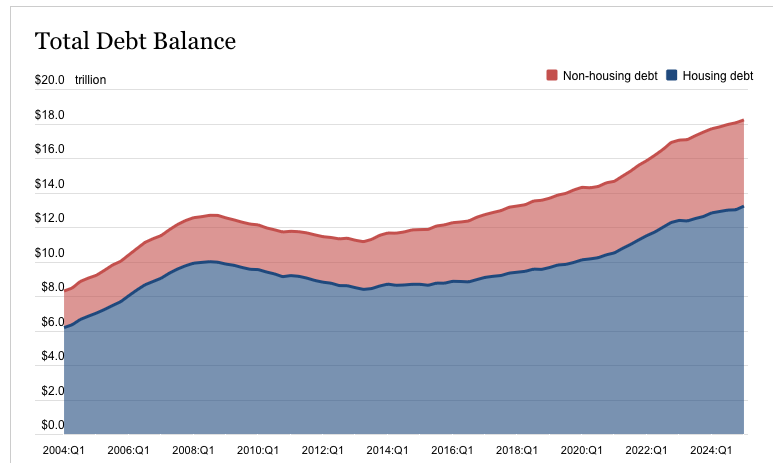 Housing debt makes sense to me. We need a place to live and houses are expensive. But the non-housing debt is worrisome. It’s increasing pretty rapidly. Let’s take a look at some household debt numbers from the Motley Fool.
