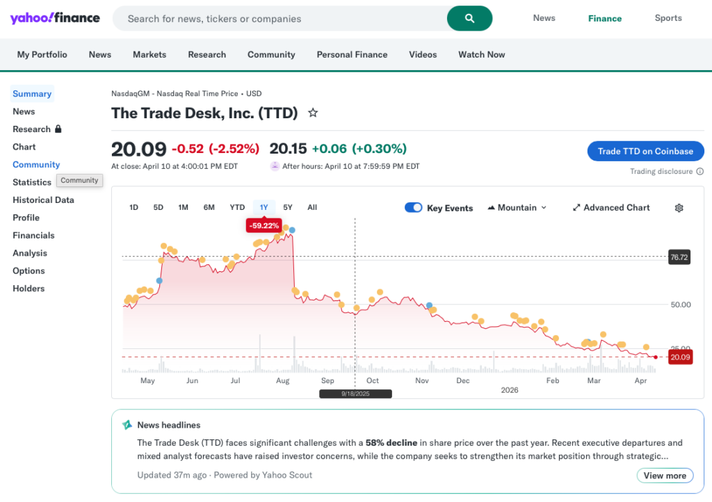 Tech stocks in general have gotten whacked due to concern about AI replacing everything. Competition is tough. The Trade Desk is up against Google and Amazon. Executive departures can be a sign of trouble.