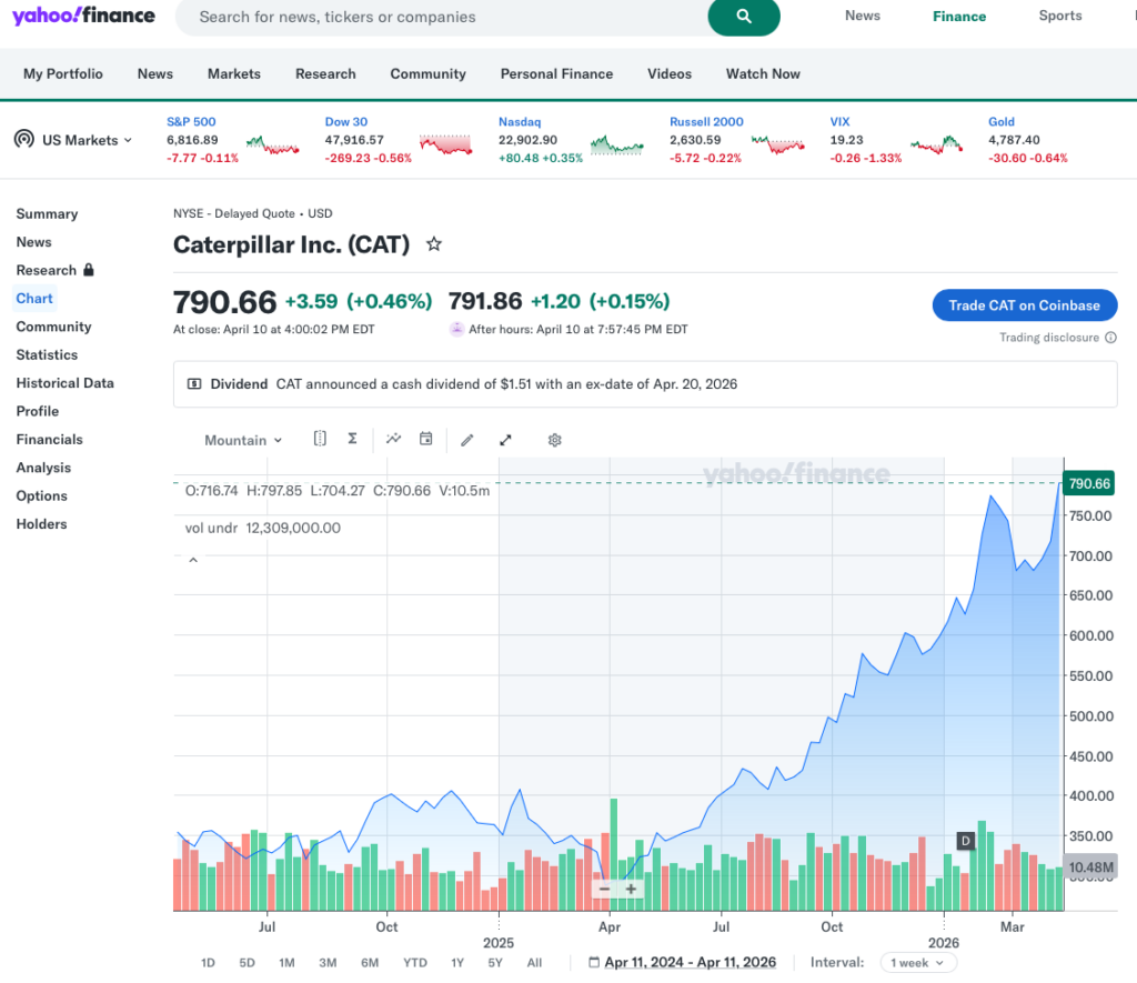 The biggest shocker in my portfolio is Caterpillar. It’s up 38% YTD. Look at the 2 yr chart.