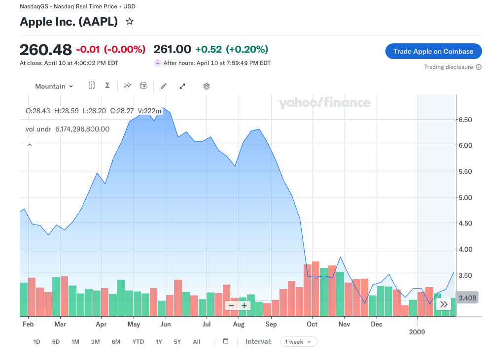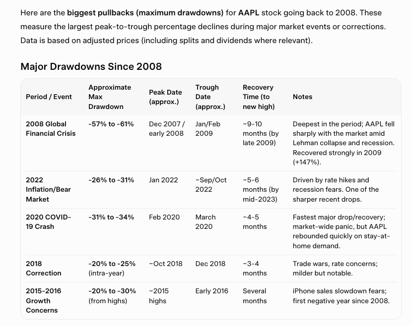 But there were some really bad years for Apple. I asked Grok.