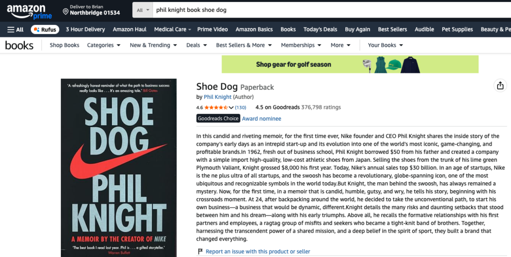 I read the Phil Knight autobiography Shoe Dog a few years back.