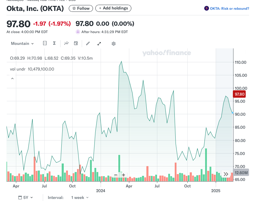 Which is what I did as Okta went lower. And the ride for Okta was bumpy. Between $66 and $110.