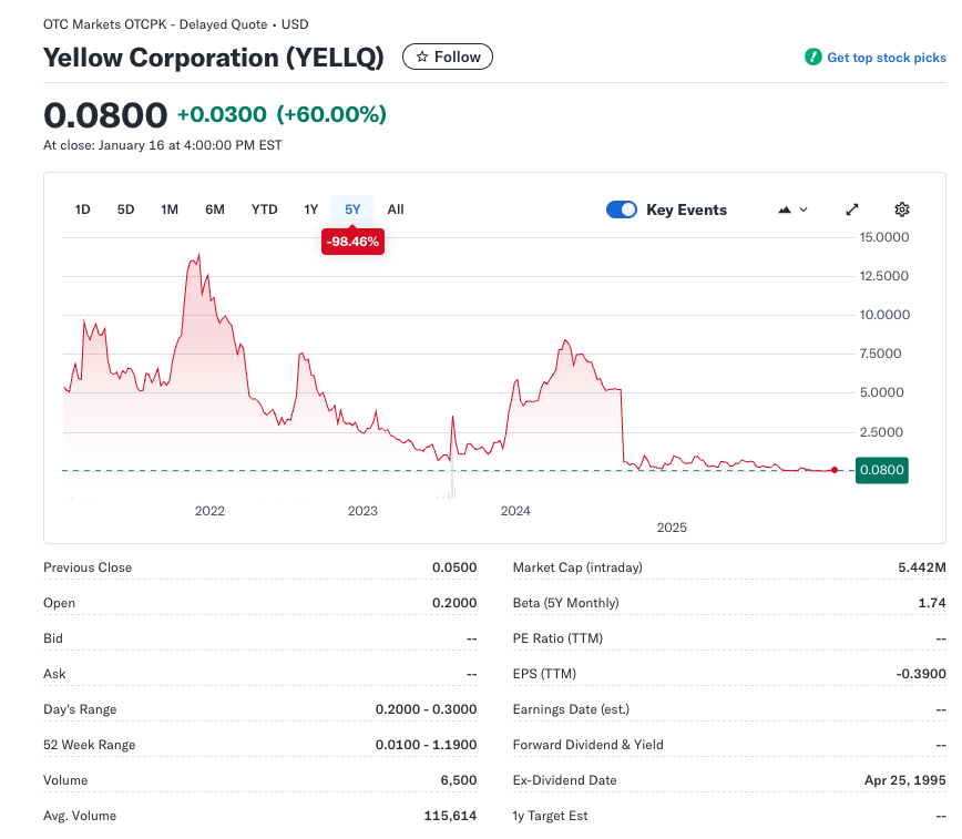 I bought trucking company Yellow at one point. It went bankrupt. It still trades under YELLQ, but it is unlikely that any holding period will make this a winner.