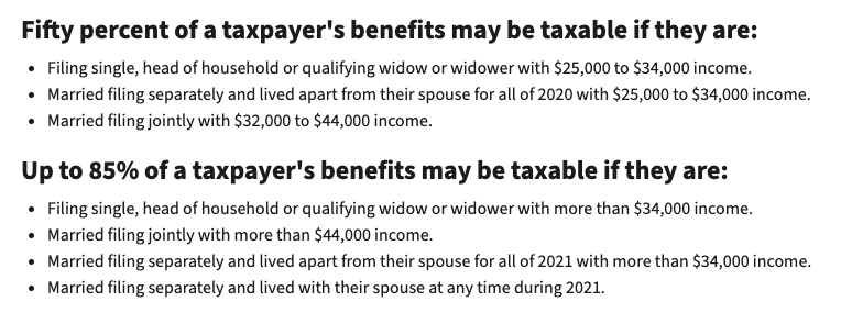 The good news is that not all of my social security income is taxed. Depending on my income level, either 50% of my social security income is taxed or 85% of my social security income is taxed. Read more here from the IRS.