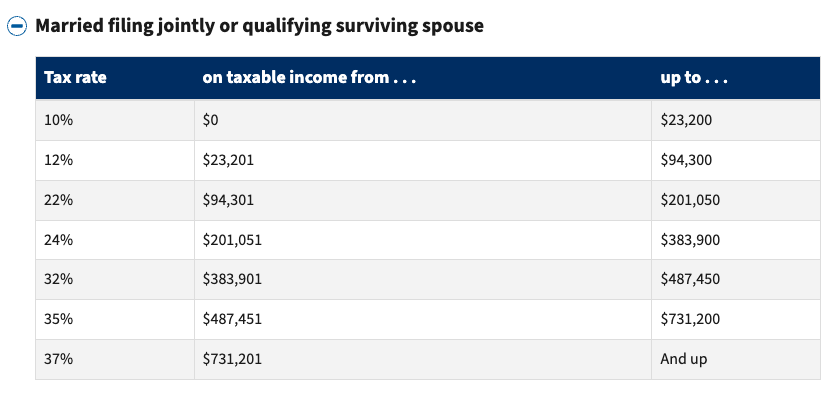 I live in Massachusetts. We pay a straight 5% rate on taxable income. That’s boring, so let’s talk about federal taxes.