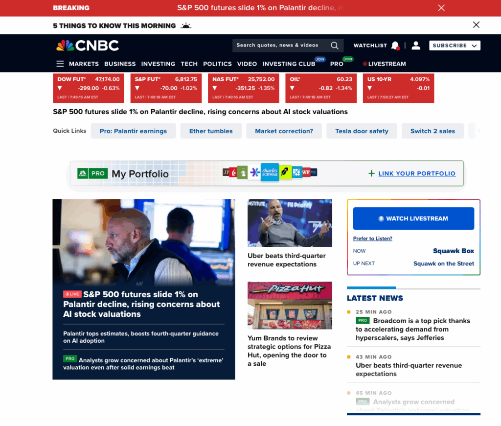 On the left side of the CNBC page we’re worried about a tech stock due to AI stock valuations. On the right side, Broadcom is a top pick (despite being a tech stock with a high valuation and AI focus).