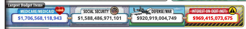 More on debt interest than defense. That’s a bummer. The government’s debt is worse than our credit card debt.