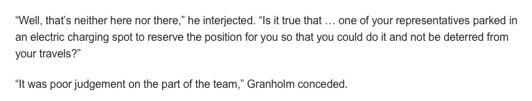 In order to ensure success, Granholm appears to have had an advance team that would charge (pun intended) ahead and, if necessary, park their non-electric vehicles in working electric vehicle charging stations to enable Granholm to charge up quickly in front of the press.