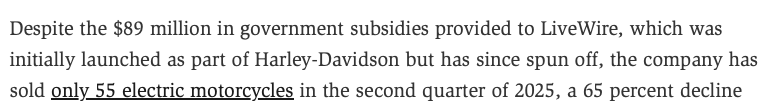 That said, $89 million to help a company grow to sell 55 motorcycles in a quarter doesn’t sound wise. And the whole road-trip debacle really irritates me.