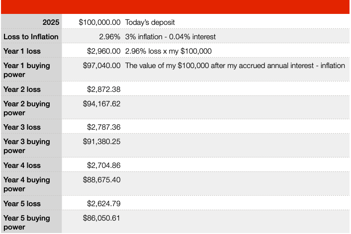 The 0.04% in interest lags the approximately 3% current level of inflation.