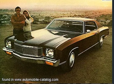My first vehicle was a 1971 Chevy Monte Carlo. Here’s a nice one. Picture this car with lots of bondo and 5 different shades of paint.