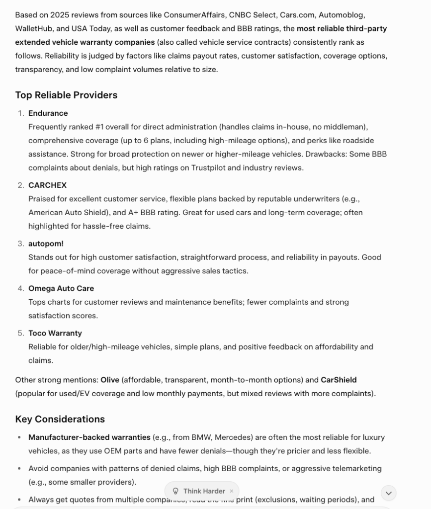 Finding a reputable after-market warranty can be a challenge. Start here with our friends at car talk. Then ask Grok or ChatGPT to analyze reviews and recommend some reputable companies.