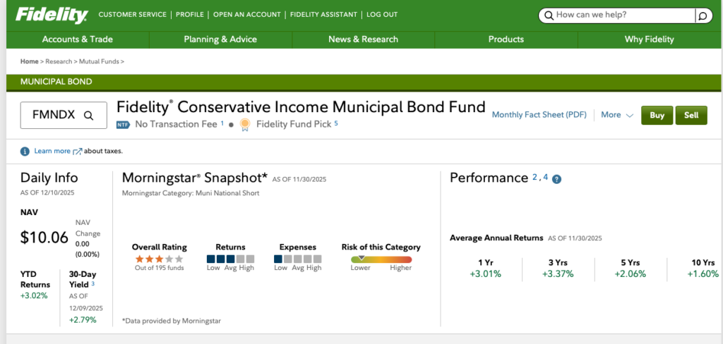 We could take on a little more risk with Fidelity® Conservative Income Municipal Bond Fund. No state tax advantage, but a little boost in returns. And still very conservative.